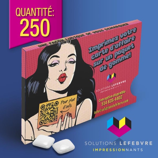 Une façon originale et ludique de laisser votre « Marque ». PAQUET DE GOMME PUBLICITAIRE L’objet publicitaire indispensable! Le