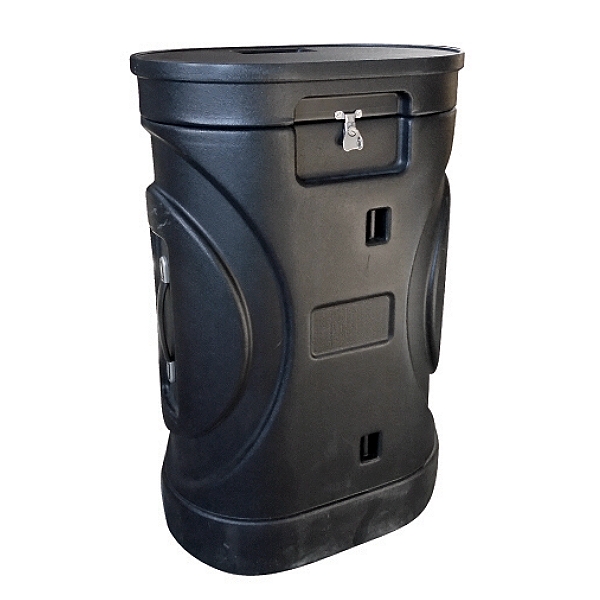 Une caisse de transport qui se converti en comptoir pratique. Caisse rigide sur roulette avec compartiment rembourré pour les lampes. Visuel imprimé sur tissu. Muni de 2 poignées sur le dessus pour le transport et sur le côté pour faciliter la manipulation.